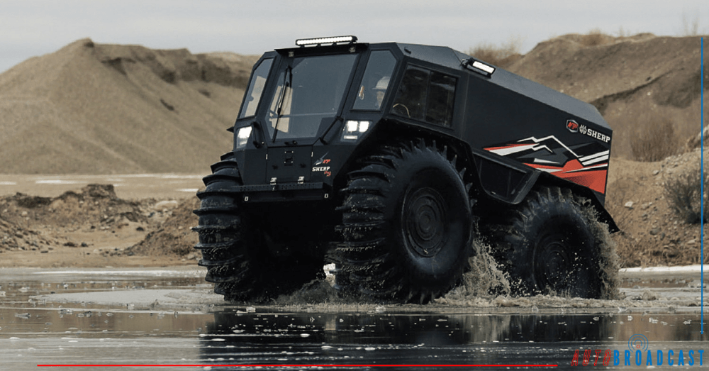 If you want to explore the beaten path and traverse uncharted territory, then the Sherp can serve you. This massive beast measures 11 ft long, 8.5 ft wide, and 8.2 ft tall and has a low center of gravity allowing you to stay grounded. The massive low-pressure tires feature paddle shape tread. This tread allows the Sherp to explore low-lying bodies of water, making this the ideal amphibious vehicle for outdoor enthusiasts.